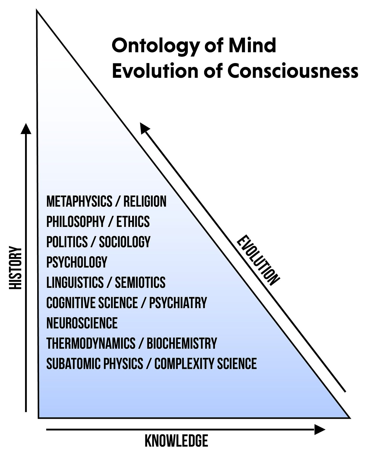 Below is a non-exhaustive list which defines a set of nine knowledge domains which describe the mind’s ontological ladder—each defining an important part of its everyday operation. But crucially, they also describe the evolution of consciousness. Each of these bodies of knowledge represents complex systems which emerged from the others.