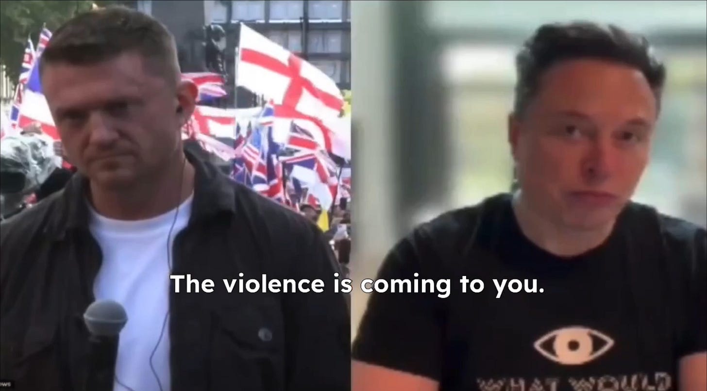 Yesterday, Elon Musk spoke by video to a throng of white nationalists in England led by criminal British fascist Tommy Robinson.