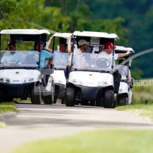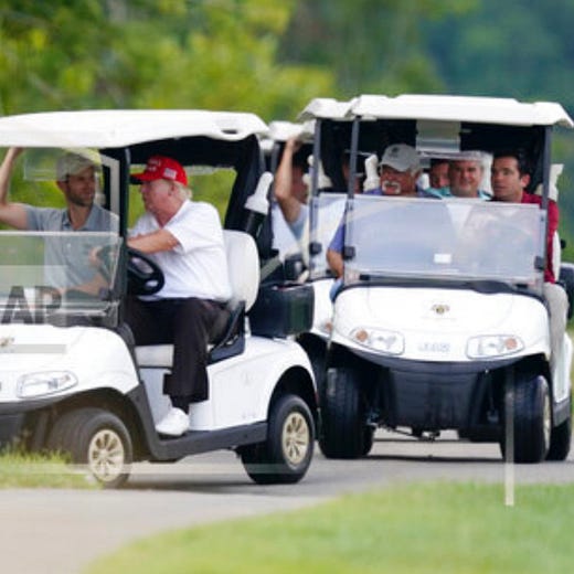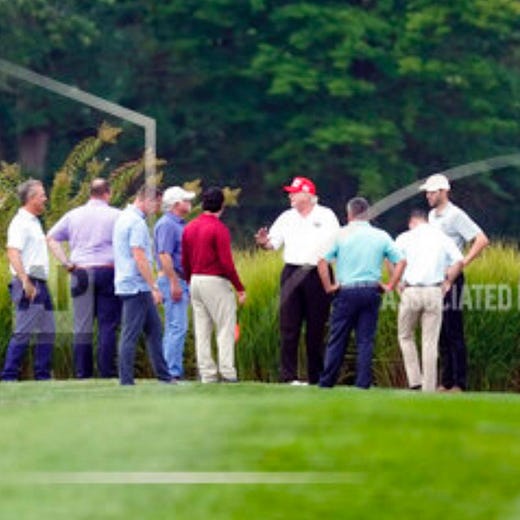Today, Trump doesn’t have golf shoes on. But he’s at the golf course. 🥴