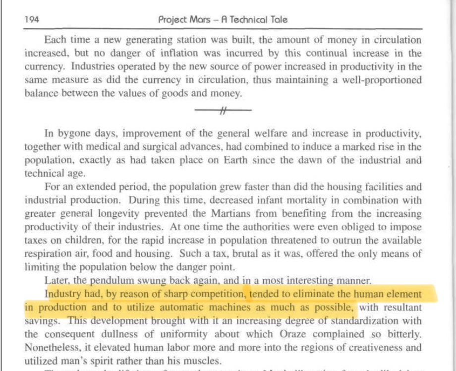 “Industry had… tended to eliminate the human element in production and to utilize machines as much as possible.”