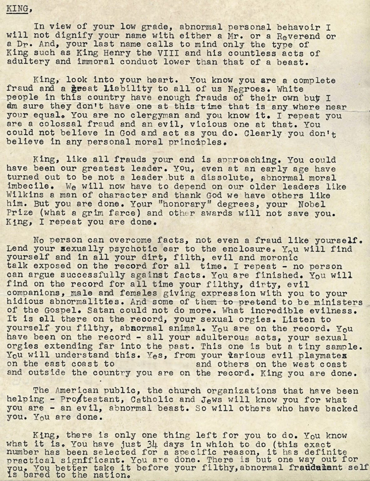 For example, Hoover’s FBI created the conditions for the assassination of Malcolm X, and tried to get Martin Luther King to kill himself. Here is part of the letter the FBI mailed anonymously to MLK in 1964.