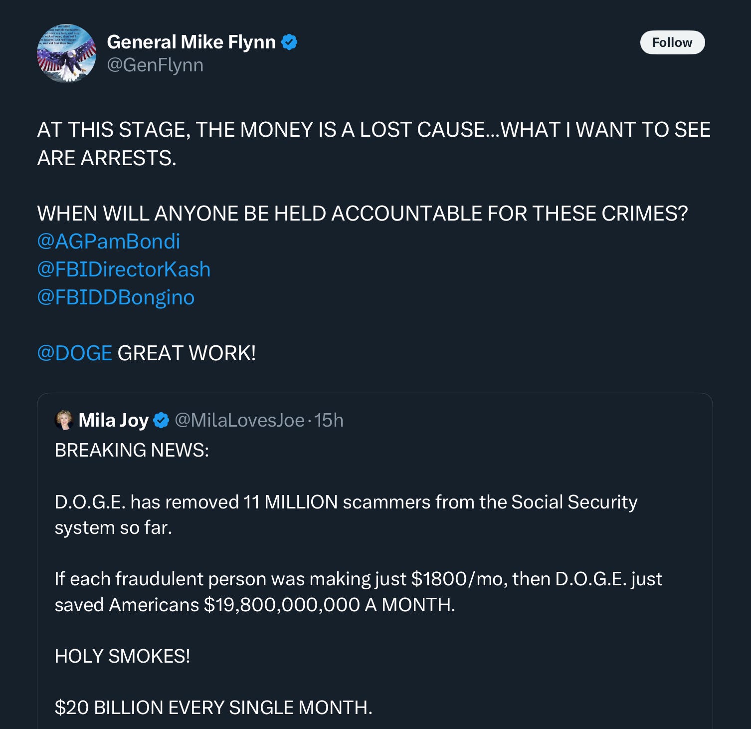 While I try to keep my personal issues from interfering with my work, it’s frankly very hard to separate this from my personal situation. Kash Patel sued me in 2023, after his mentor and friend Mike Flynn’s frivolous lawsuit failed to silence me. Here’s Flynn’s take on the whole situation. [Full disclosure: Flynn is scheduled for a deposition in my case on Monday.]