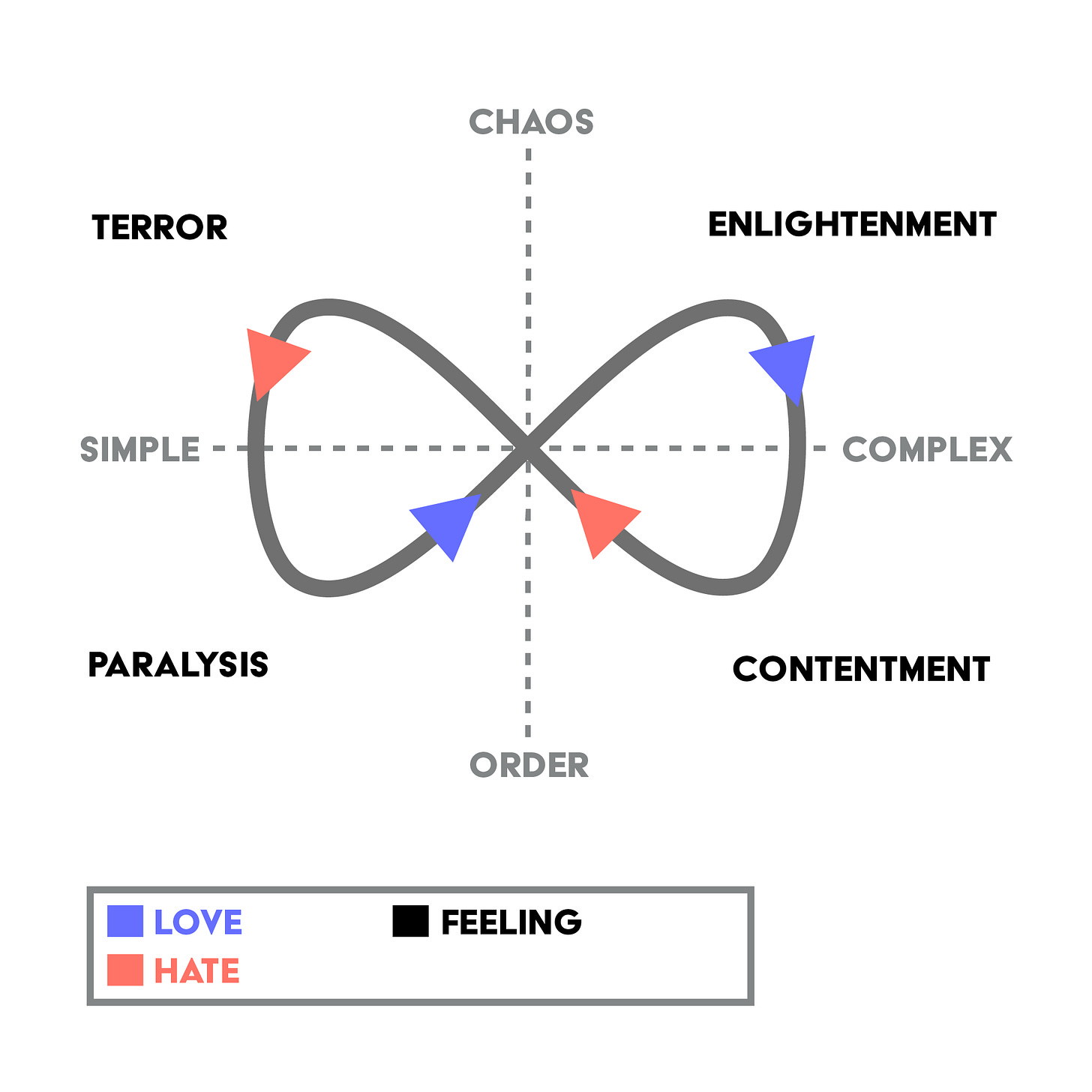 Love and its sibling empathy, on the other hand, are positive emotions—they are literally additive mathematically. They bind, not divide. They bring more connection, layer, and structure. This increases the dimensionality of a system—another way of saying it increases the system’s complexity.